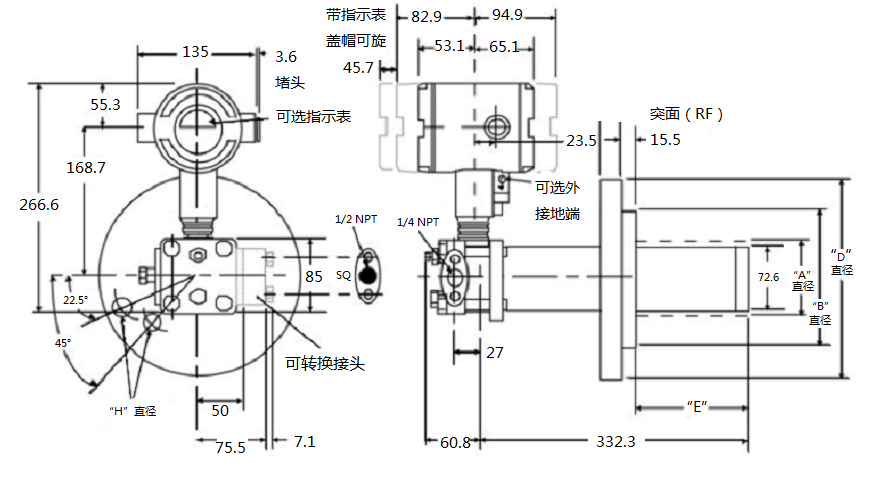 防堵防粘型壓力變送器( 適合常壓敞口容器) |