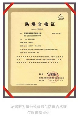 國家的儀器儀表防爆安全監(jiān)督檢驗(yàn)站的認(rèn)證,其防爆性能指標(biāo)滿足防爆認(rèn)證標(biāo)準(zhǔn) |